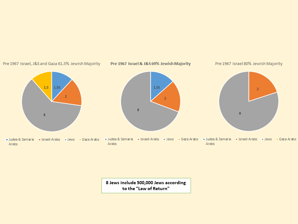 *The aforementioned artificial inflation of 1.7 million documents a population of 1.55 million Arabs in Judea and Samaria, not the official 3.25 million.